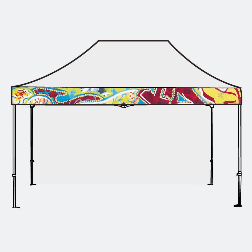 Blendentuch/Volant mit vollflächiger Bedruckung für Faltzelt, einfache Montage mit Klettbändern.