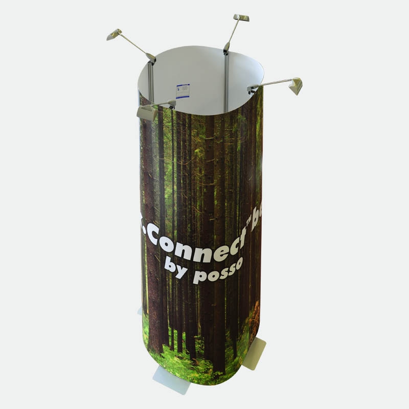 Die Montage ist kinderleicht und läßt sich in kurzer Zeit erledigen. Einfach die vertikalen Trägerstangen montieren und mit dem Tellerfuß verbinden, dann in die gewünschte Konfiguration stellen und die Digitaldruckbahnen anbringen.