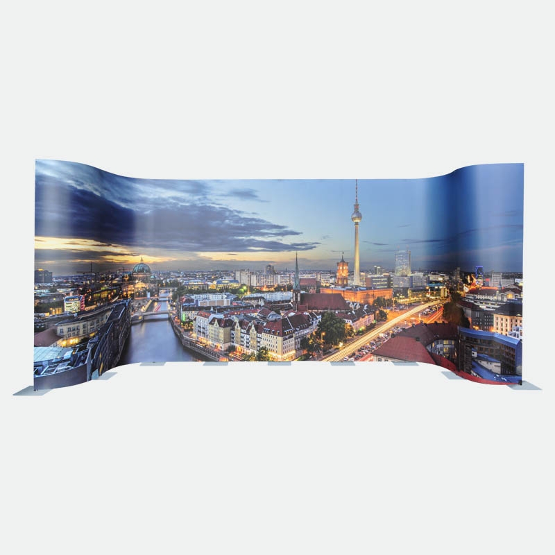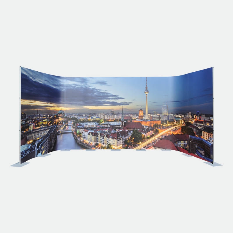 Dank der hochwertigen Magnet-auf-Magnetverbindung der Digitaldruckbahnen erzeugen Sie mit diesem Messedisplay ein durchgehendes Bild, welches nicht durch störende Profile oder Zargen eingeschränkt wird.