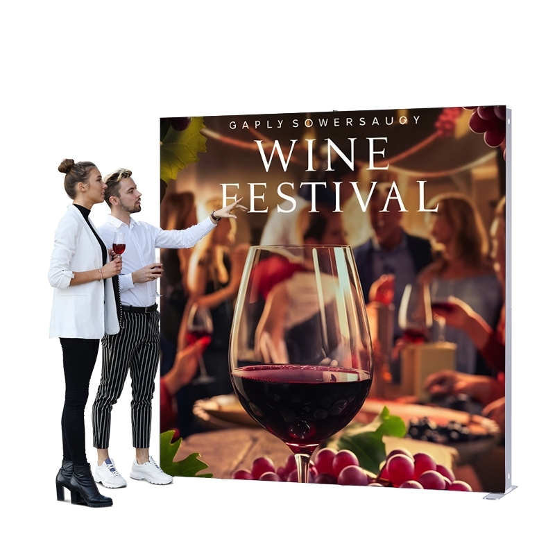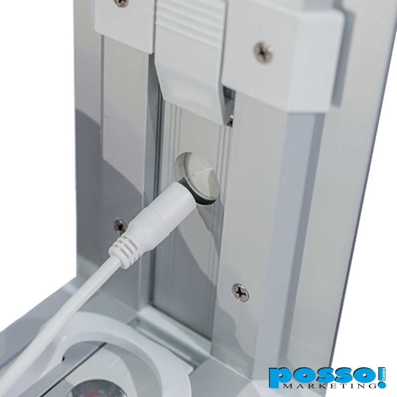 Mobiles und modulares Leuchtrahmensystem, mit leistungsstarken OSRAM LEDs für eine gleichmäßige und beeindruckende Darstellung von Textildrucken.