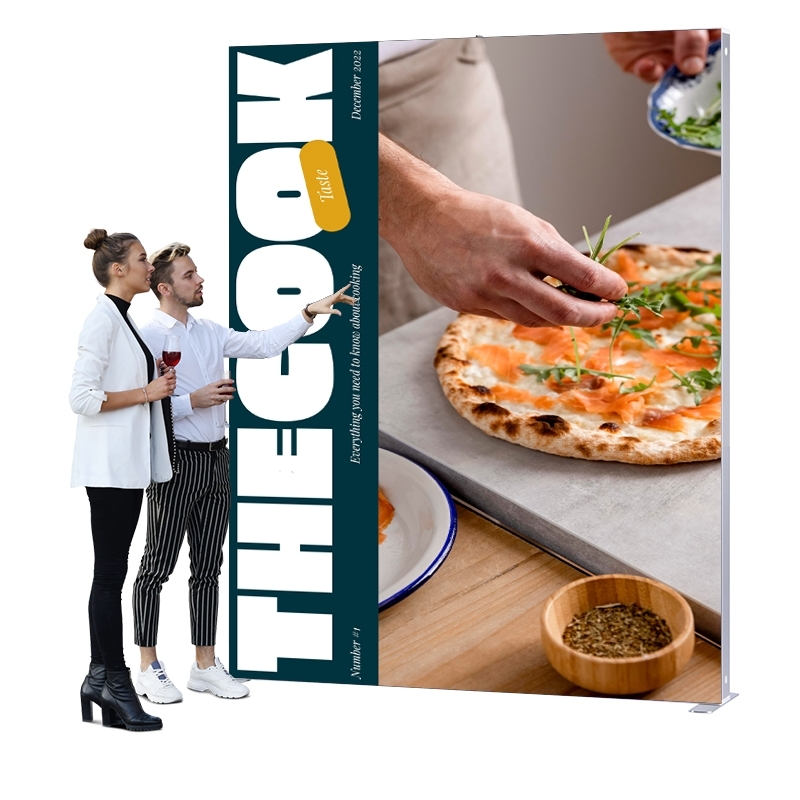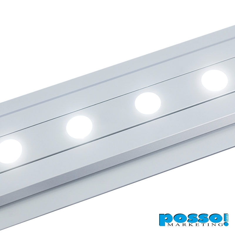 Mobiles und modulares Leuchtrahmensystem, mit leistungsstarken OSRAM LEDs für eine gleichmäßige und beeindruckende Darstellung von Textildrucken.