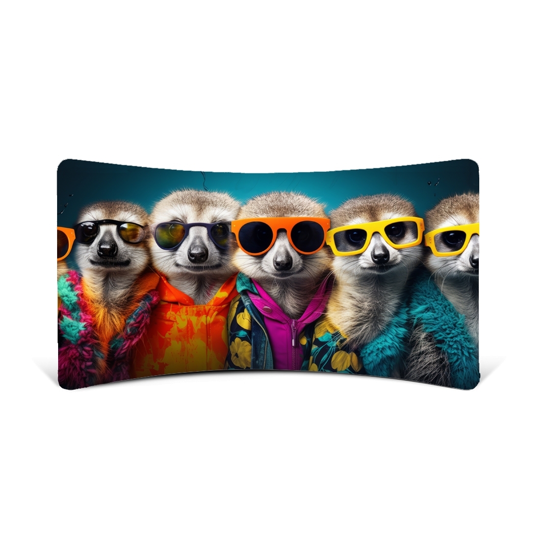 Der brillante thermosublimations Textildruck auf B1-zertifiziertem Stretch-Stoff sorgt für eine glatte, edle Oberfläche – wahlweise einseitig oder beidseitig bedruckt. Dank des praktischen Reißverschlusses wird der Stoff passgenau über das Gestell gespannt und bleibt faltenfrei in Form.